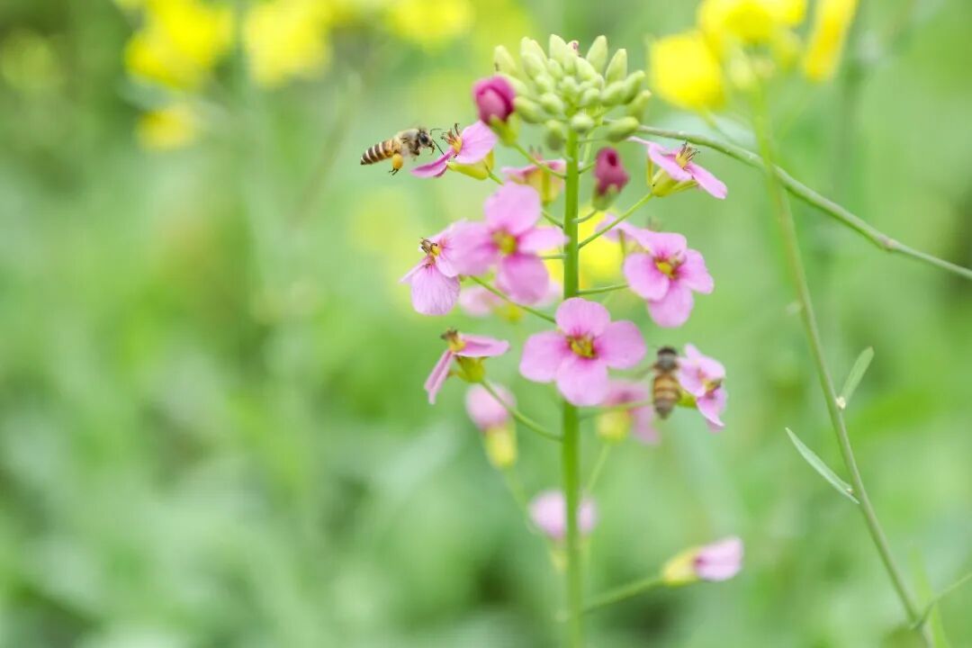 蜜蜂与蝴蝶在花丛中穿梭飞舞,