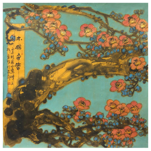 《红棉映紫林》胡名河中国画68cm x 68cm