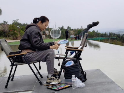 蓝田紫林景区内,有六棵几十年的红棉树,花红如火,在景区内格外醒目,像几个火炬,阐释着革命精神。画家们纷纷拿出画具,或席地而坐,或驻足而立,面对连绵的花海与苍翠的远山,开始挥毫泼墨。从不同角度取景,将眼前的繁花似锦转化为笔下的丹青韵律。无论是工笔的细腻勾勒,还是写意的泼墨挥洒,都力图展现花都“花卉之都”的独特魅力与生态之美 。