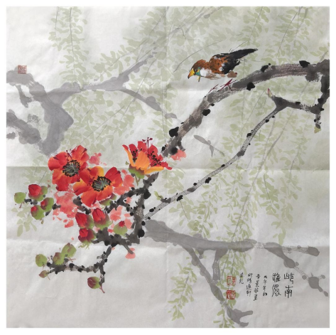 《木棉争春》林金明中国画68cm x 68cm